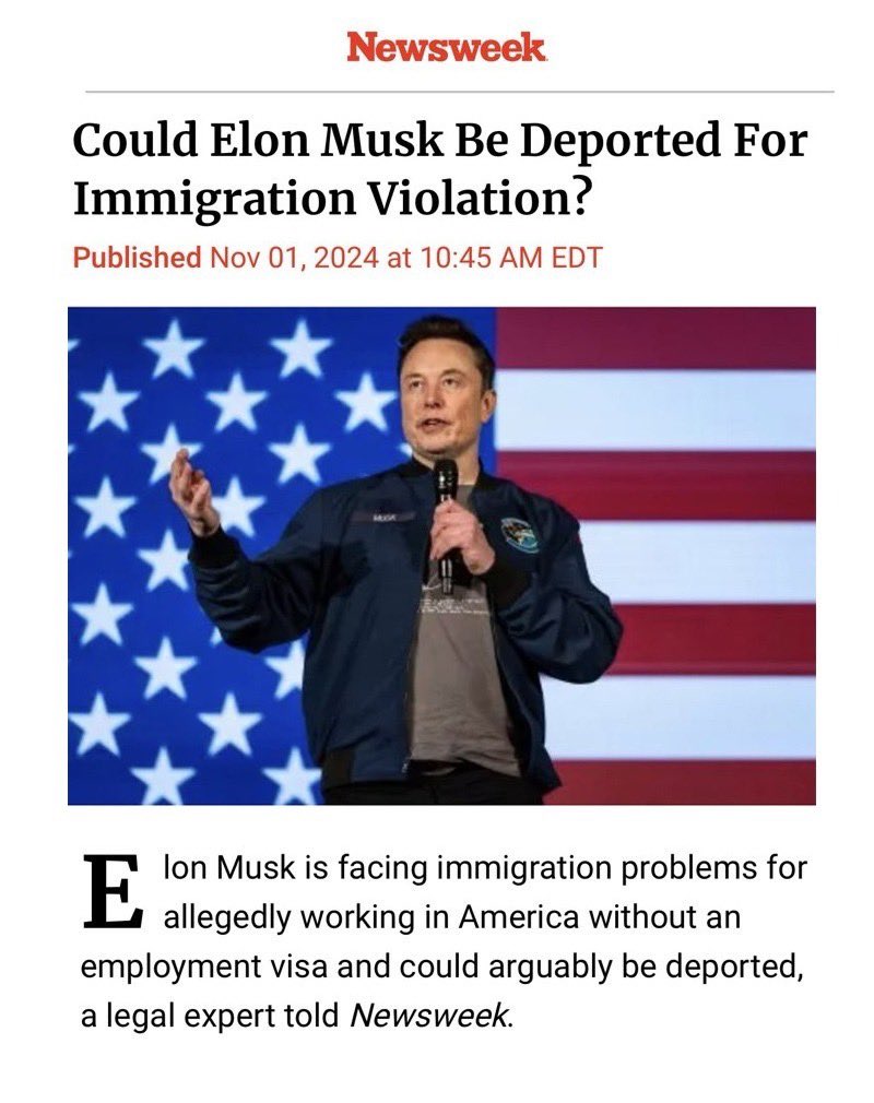 Громкие заголовки «Илон Маск может лишиться гражданства США», «Маску грозит депортация», «Президент Байдена призывают депортировать Илона Маска за нарушения миграционного законодательства» в последние недели мелькают на страницах крупных мировых СМИ. В соцсетях также широко обсуждается возможность лишения Илона Маска гражданства США и его депортации, несмотря на близость с будущей президентской администрацией Дональда Трампа. Что стоит за этими утверждениями и, стоит ли миллиардеру опасаться «нависшей над ним» угрозы?
