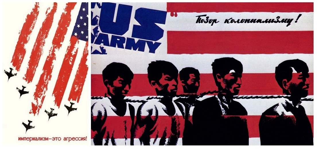 Советский Союз, как и современная Россия, активно использовал образ внешнего врага для консолидации общества, отвлечения внимания от внутренних проблем. Если явных врагов не было, их непременно находили. В первую очередь, в Советском Союзе боролись с западными странами, в особенности с США. Америку представляли агрессивным эксплуататором, угрожающим миру, социалистическим идеалам и свободе рабочего класса.