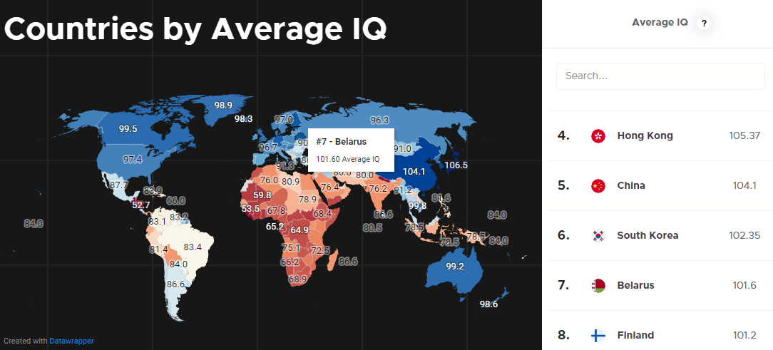 Помимо того, что Беларусь была на первой строчке в 2019 году, а теперь, возможно, её утеряла, нужно сказать и о другом нюансе. Как мы говорили, типичные тесты на IQ не могут и не должны восприниматься в качестве доказательства «самой умной нации». Они для этого попросту не предназначены.