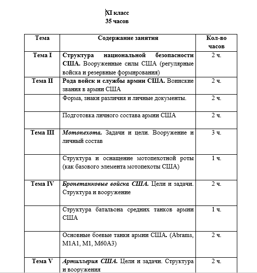 Изучению военной терминологии, военно-топографических карт, военному праву и другим общим вопросам посвящена большая часть факультативного курса в 10 классе. Изучение вооружённых тем Великобритании в нём лишь одна из тем. А вот в 11-ом классе, действительно, белорусские учащиеся будут тщательно изучать структуру и особенности военной машины США. Этому посвящён весь год обучения.