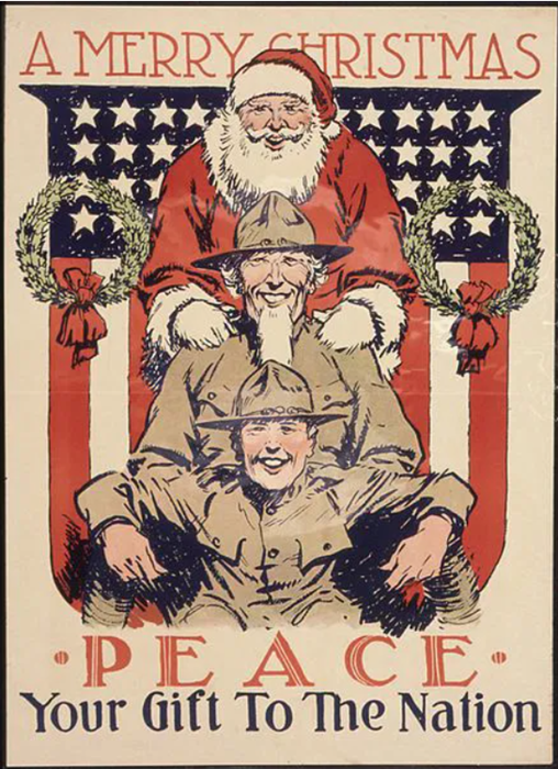 Во время Первой мировой войны Санта-Клауса изображали в его классическом виде и на американских агитационных плакатах.