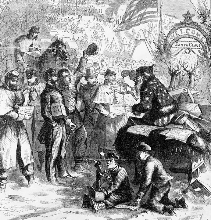 Первого Санта-Клауса с чертами, приближёнными к современным, Наст представил в 1863 году в журнале Harper’s Weekly как часть большой иллюстрации «Рождественский отпуск».