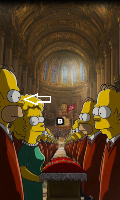 Содержание клипов было идентичным и сообщало следующее: якобы в одном из малоизвестных эпизодов Симпсонов есть сцена, в которой в центре собора Святого Петра стоит гроб, а вокруг него кардиналы молча склоняют головы. На заднем плане флаг Ватикана приспущен, а на гигантском экране чётко отображается время 11:11.