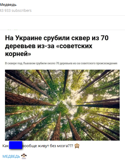 Первые манипуляционные сообщения о массовой вырубке деревьев в городе Городок под Львовом стали фигурировать 1 августа. А 2 августа к обсуждению истории подключилась уже вся пропагандистская машина. Новость показалась редакторам столь резонансной, что её продолжили постить и в сентябре. Прокремлёвские источники утверждали, что сквер уничтожили именно из-за деревьев «советского происхождения».