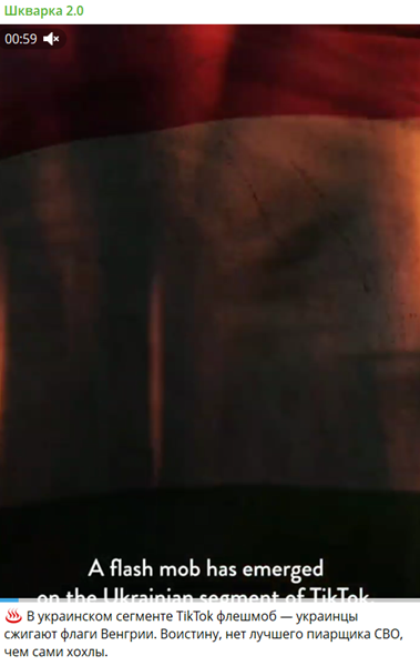 В другом видео, распространённом от имени американского журнала Wired, указывалось, будто украинцы запустили флешмоб в TikTok по сжиганию флагов Венгрии.